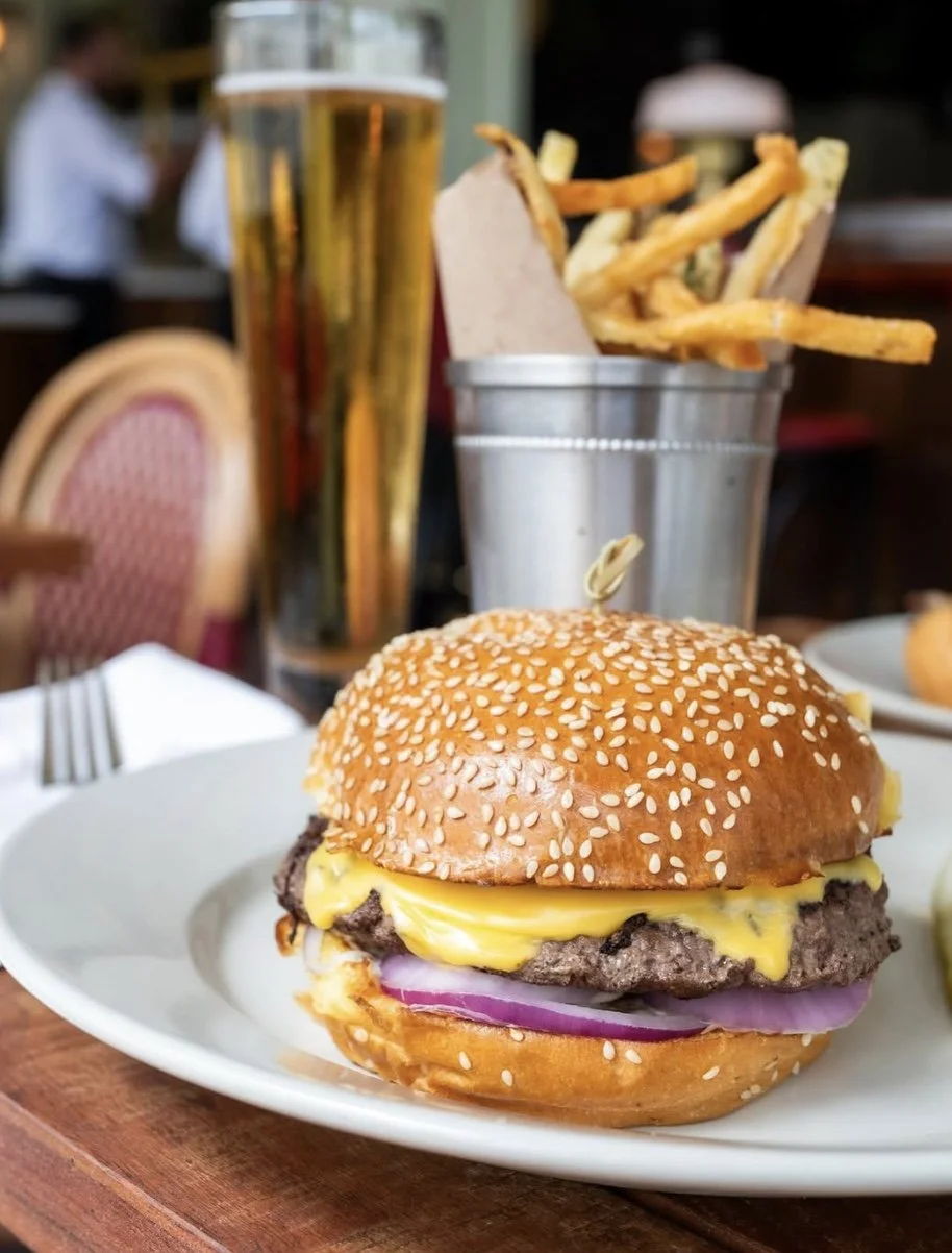 The Pub Burger is everything you want in a cheeseburger—juicy, flavorful, and served on a sesame seed bun with American cheese, red onion, and dijonnaise. A side of pommes frites rounds out the plate, making this one of the most satisfying brunch choices among Fort Worth Magnolia Street restaurants.